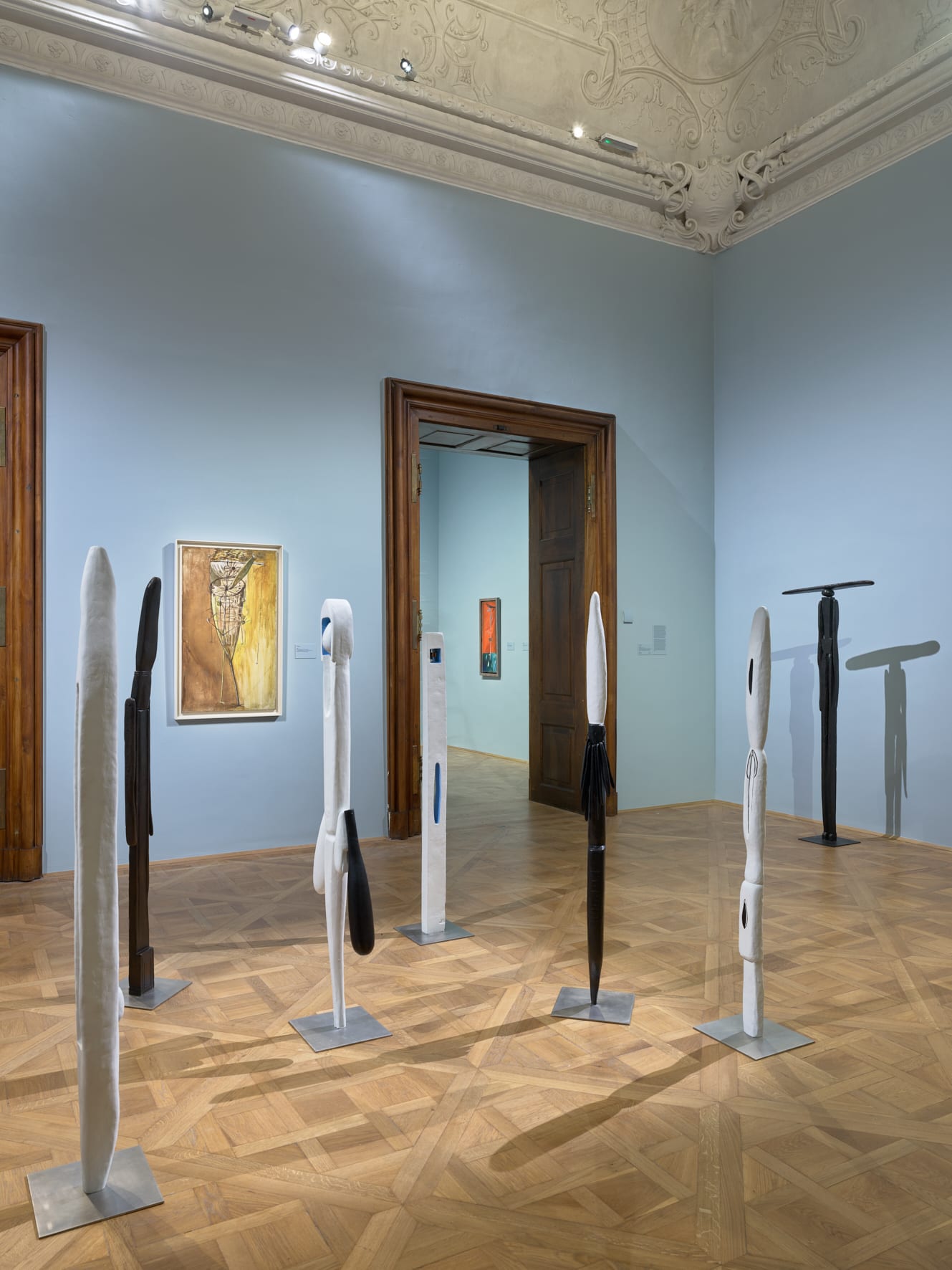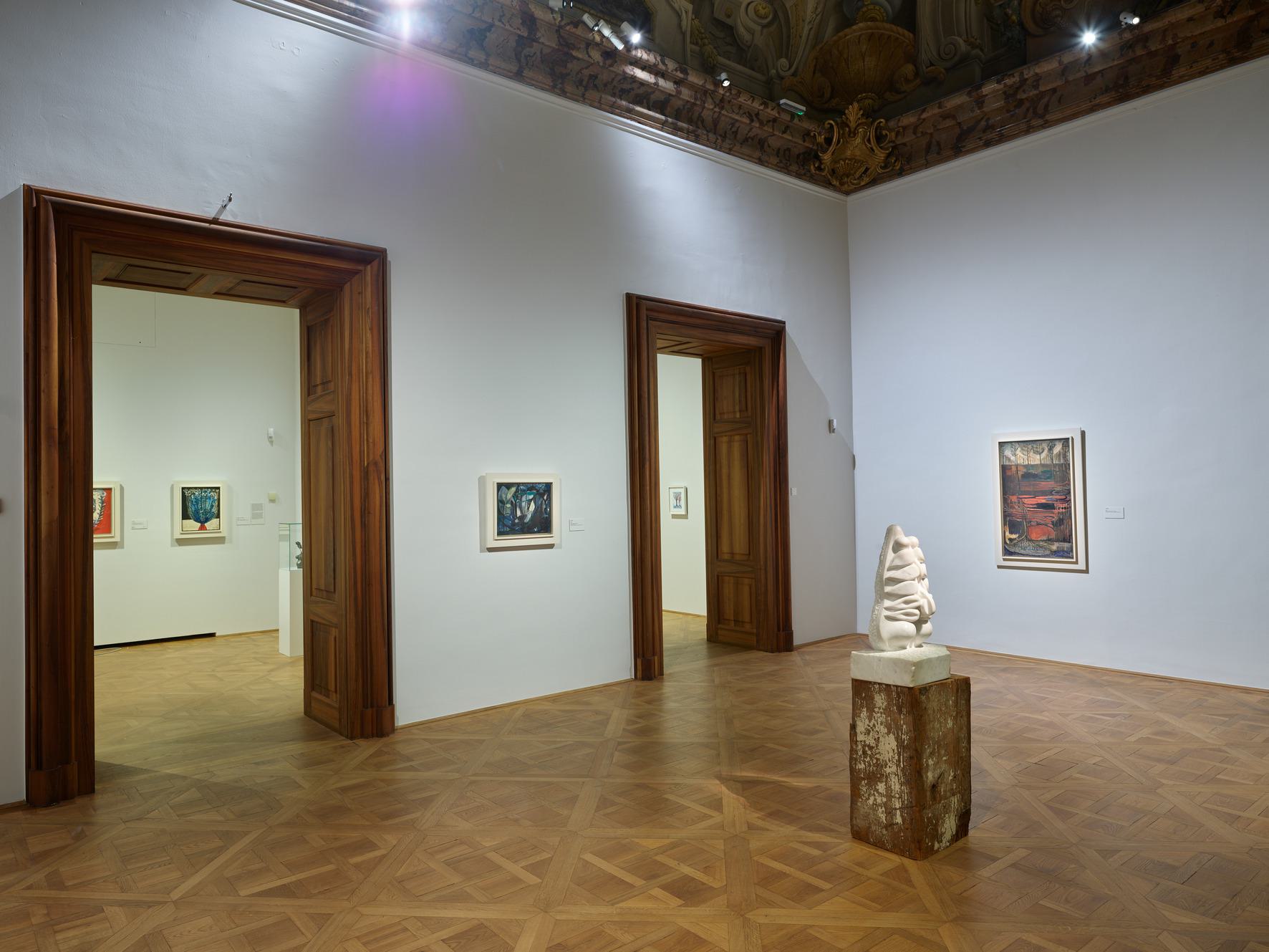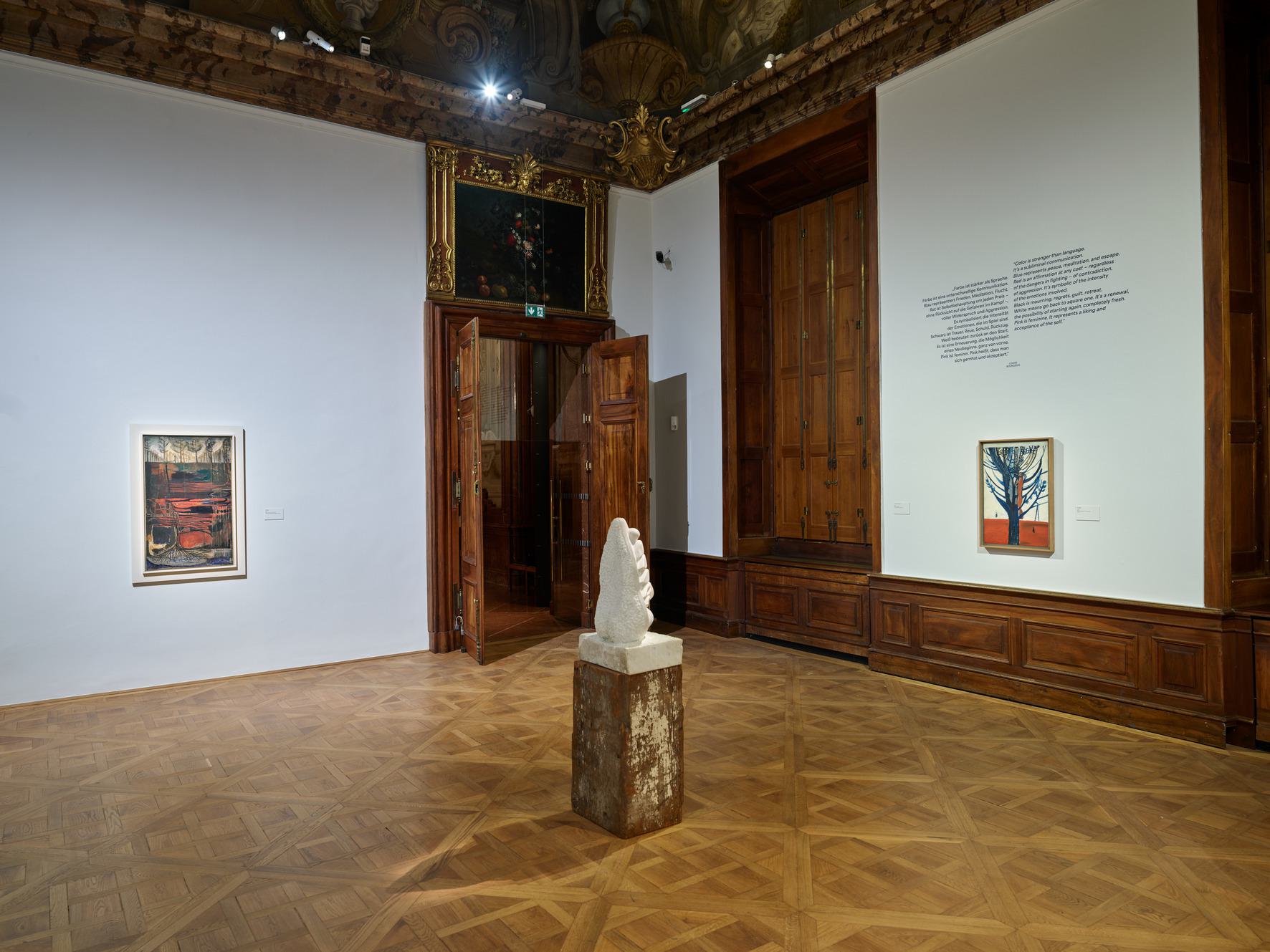 Presented in the Baroque galleries of the Lower Belvedere, Louise Bourgeois’s paintings from the 1940s were placed in dialogue with a selection of sculptures, installations, drawings, and prints from all periods of her storied career. In an oeuvre which covered a wide range of formal and material experimentation, Bourgeois succeeded in expressing contradictory impulses and binary oppositions – figuration and abstraction, male and female, conscious and unconscious – within a single work. By the 1990s, she had won global renown for her artistic achievements, becoming famous for her monumental spider sculptures and room-sized Cells. But it was in her oil paintings made between 1938 and 1949 that the French-American artist first developed the formal vocabulary and defined the thematic concerns that she would continue to explore over the following seven decades.